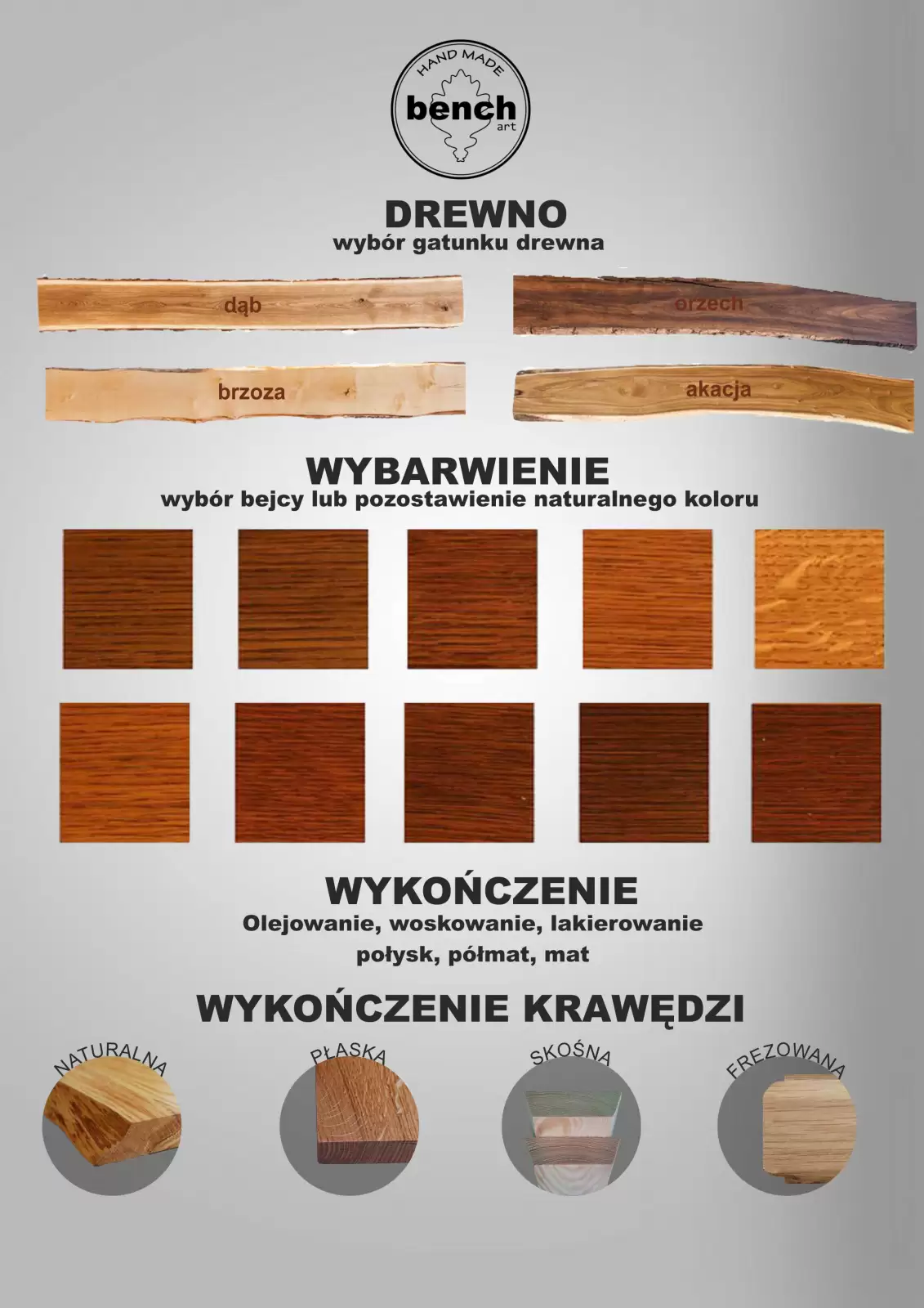 Wykonujemy meble i wyroby w różnych rozmiarach, kolorach i technikach łączenia materiałów, aby klient mógł się cieszyć niepowtarzalnością zakupionych produktów.